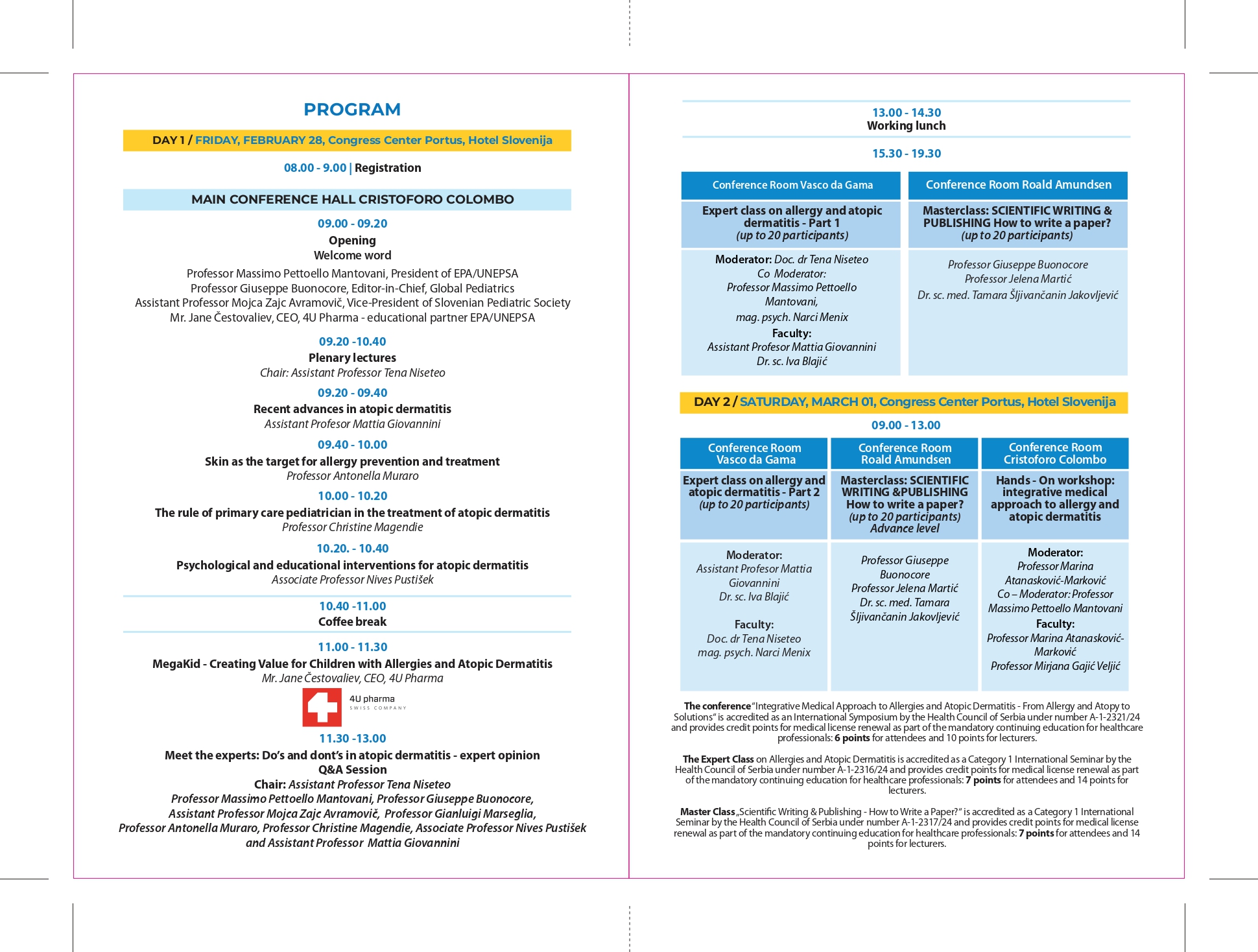 The conference, masterclass, and expert class are accredited and provide points for license renewal for physicians.